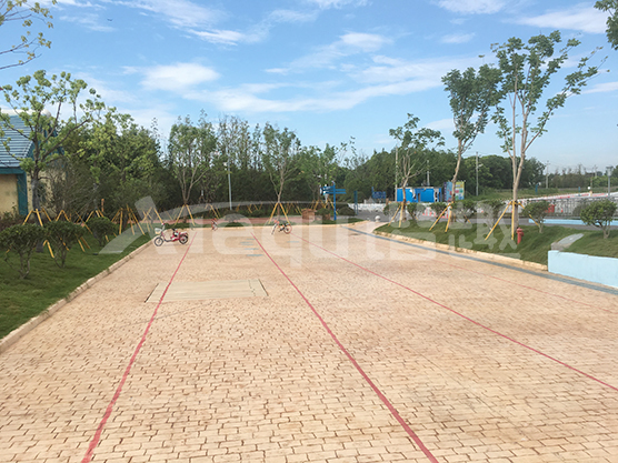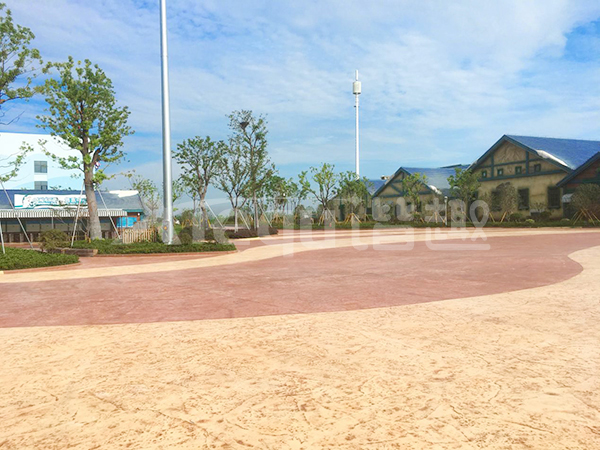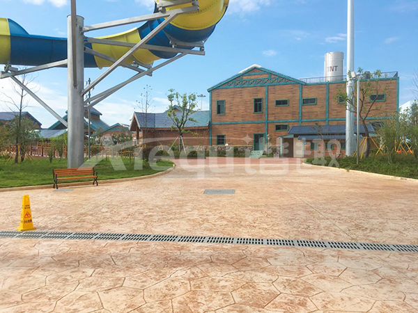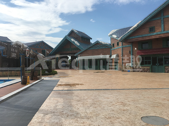鋪裝類型:壓印藝術地坪、仿沙灘藝術地坪、水池底