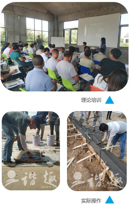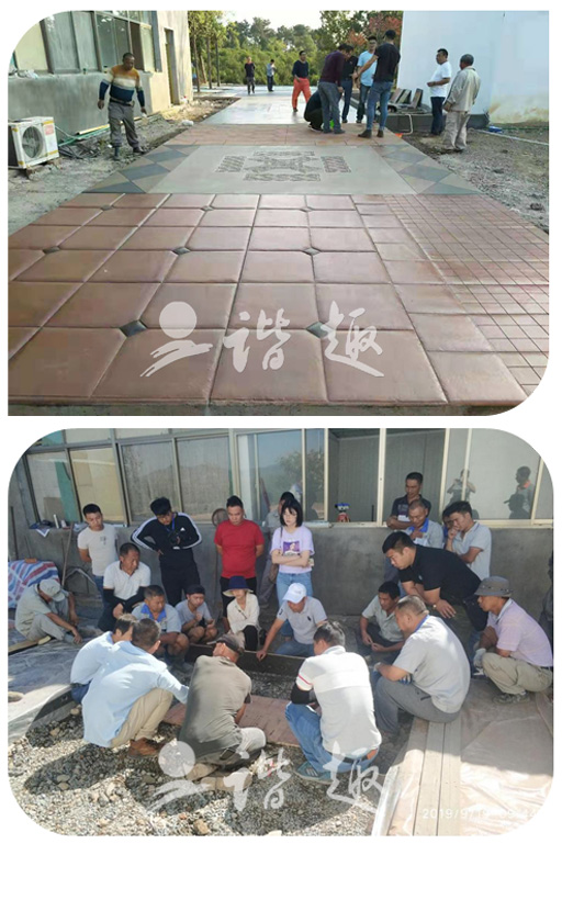 培訓(xùn)采用理論結(jié)合實(shí)際的方法逐步推進(jìn)。理論培訓(xùn)讓所有參加培訓(xùn)的人員了解熟悉彩色混凝土的科學(xué)原理。從最根本的方面了解,這樣可以讓人知其然也可知其所以然,更好的提高施工技術(shù)。現(xiàn)場(chǎng)實(shí)際操作讓處于一線施工現(xiàn)場(chǎng)的員工了解更多的施工技術(shù),施工方法。改掉以前的一些不正確,效率不高的施工方法。從而達(dá)到更高的施工技藝,為以后的客戶提供更加優(yōu)質(zhì)的服務(wù)。